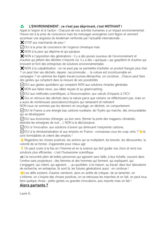 Appel à une écologie scientifique et positive :